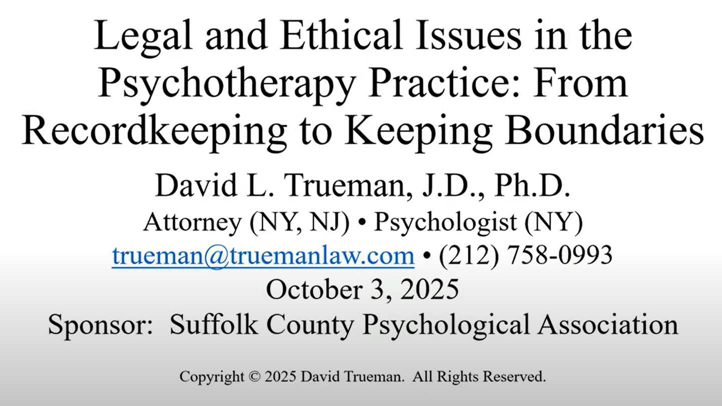 Legal and Ethical Issues in the Psychotherapy Practice: From Recordkeeping to Keeping Boundaries